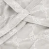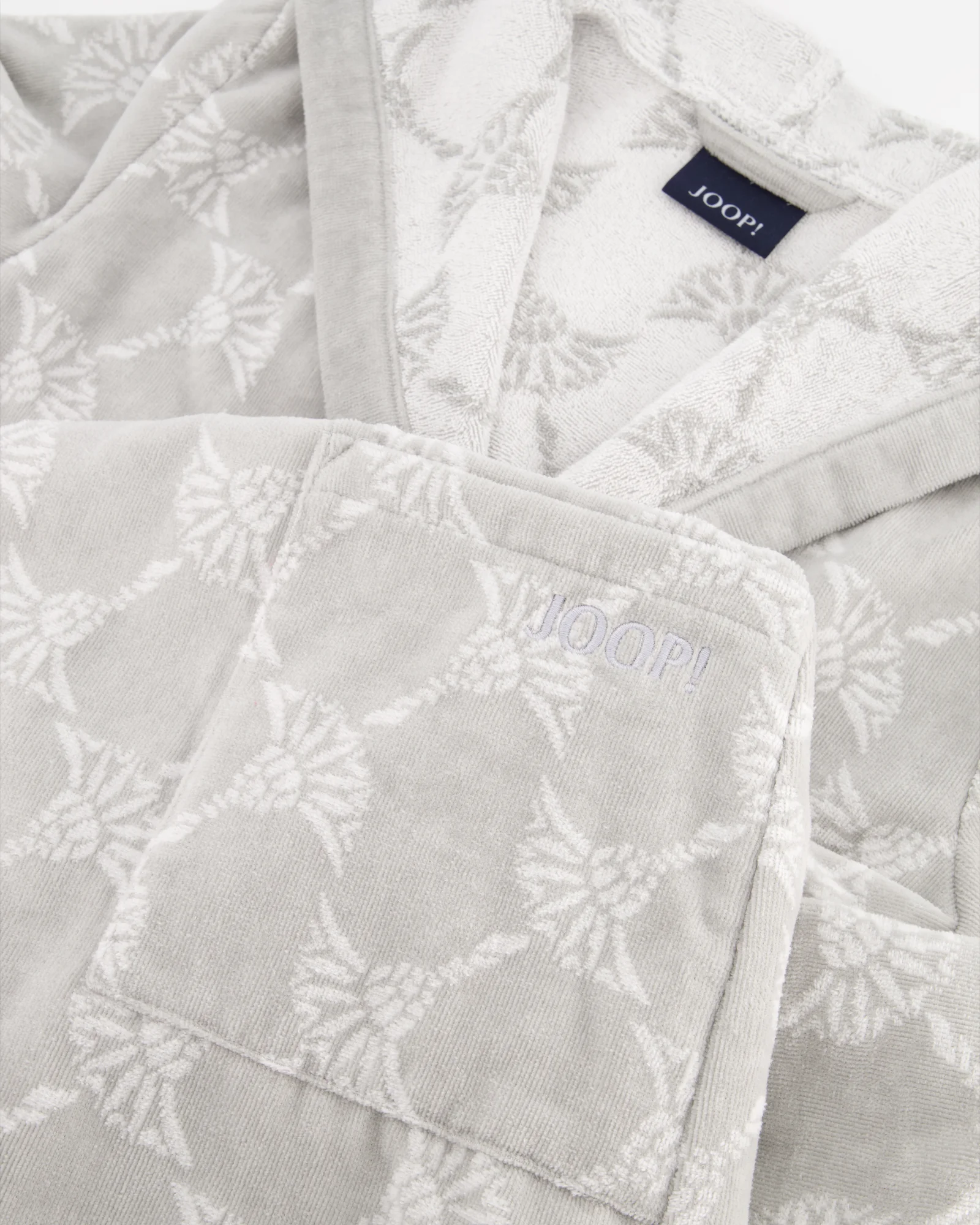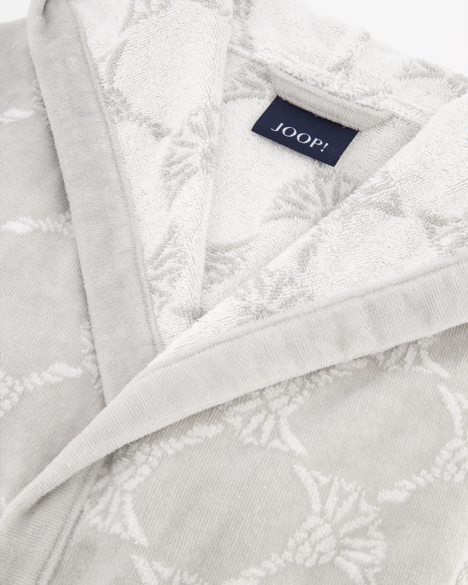 Moteriškas kimono chalatas, su šiek tiek nuleistais pečiais, surišamas diržu ties juosmeniu. Prisiūta kilpa pakabinimui ir dvi kišenės.