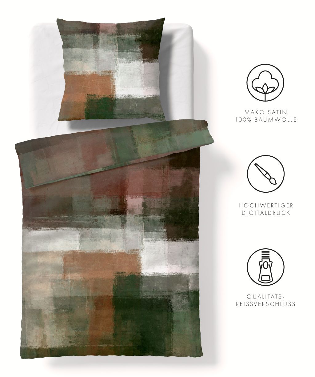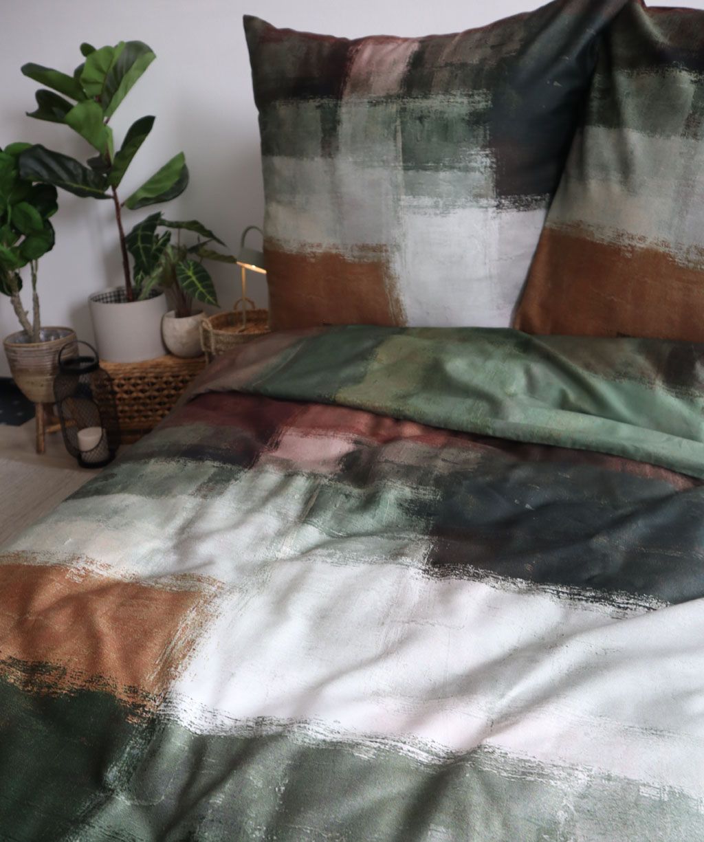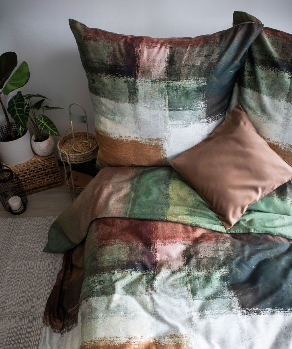Aukštos kokybės skaitmeniniu būdu atspausdinta satino patalynė, pagaminta iš 100 % medvilnės, garantuoja stilingą miego komfortą. Satininis patalynės audinys pasižymi rafinuotu blizgesiu ir lygiu paviršiumi. Tai užtikrina ypač malonų pojūtį odai. Be to, medžiaga reguliuoja drėgmę, yra patvari ir lengvai prižiūrima – ideali patalynės kokybė ištisus metus.