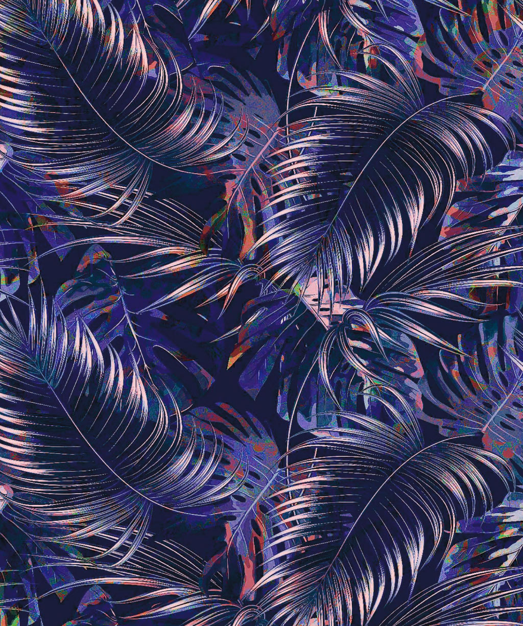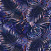 Dideli, egzotiški lapai puošia tamsų šios svajingos patalynės foną.