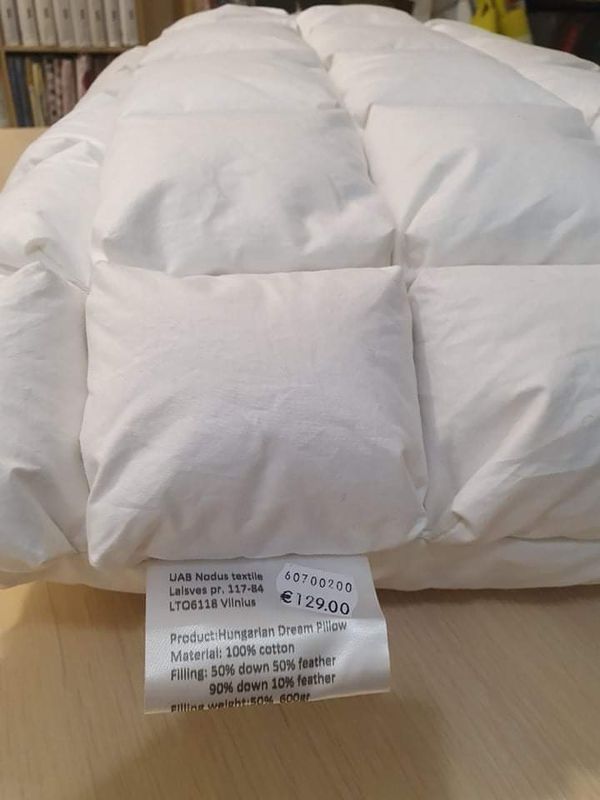 Užpildas: apatinė dalis 50 % vengriškų žąsų pūkų, 50% vengriškų žąsų plunksnos