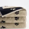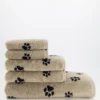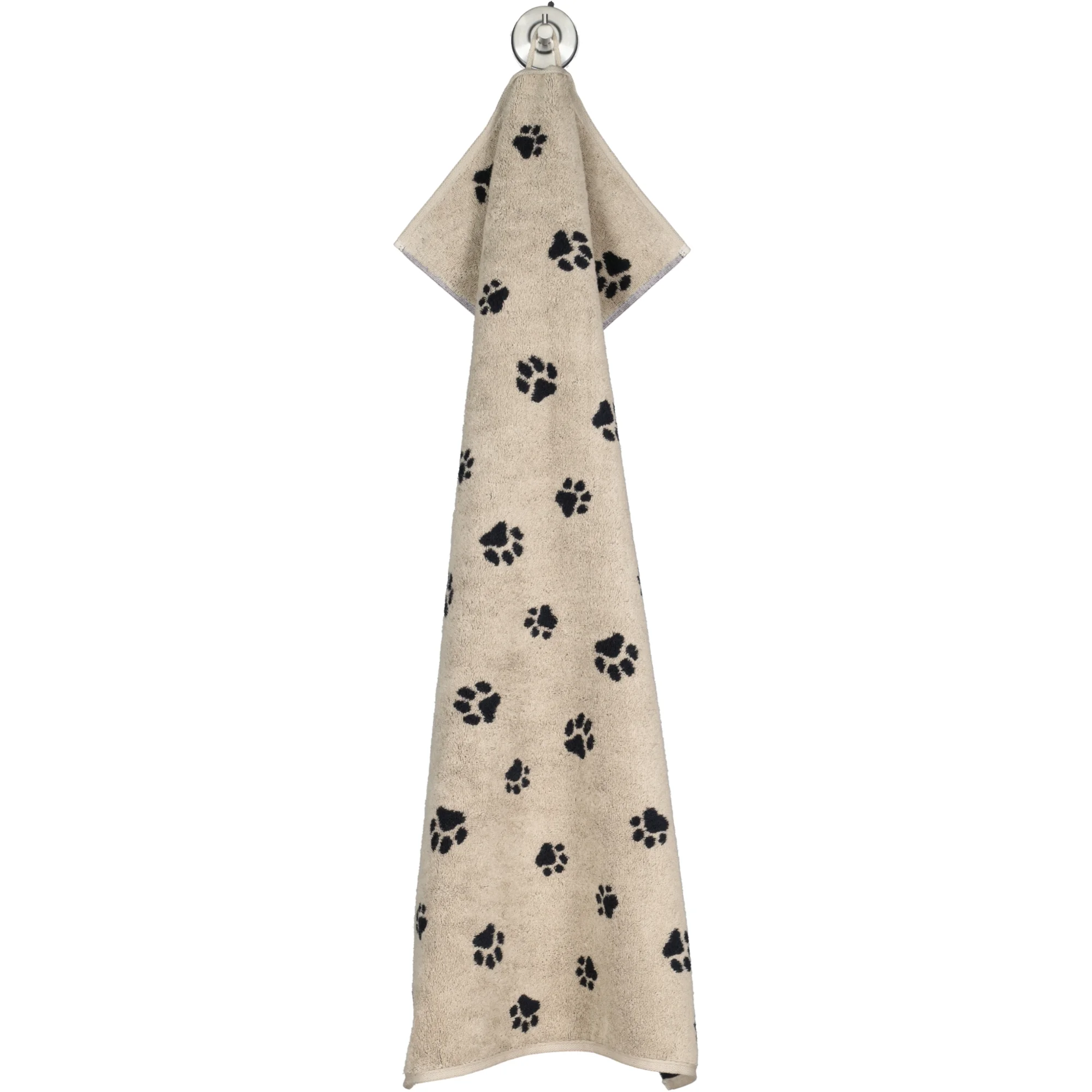 Šis rankšluostis yra daugiau nei kasdienis daiktas – tai teiginys stilingiems šunų mylėtojams. Žavus letenėlių raštas kontrastingoje juodos ir smėlio spalvų kombinacijoje suteikia rankšluosčiui unikalią išvaizdą, kuri tinka bet kokiam vonios kambariui – nuo modernaus iki klasikinio. Sukurtas naminių gyvūnėlių mylėtojams, kurie vertina stilių, patogumą ir ilgaamžiškumą. Dvipusis dizainas – juodos letenėlės smėlio spalvos fone ir smėlio spalvos letenėlės juodame fone – suteikia stilingos įvairovės ir universalumo. Pagaminta iš 100 % aukštos kokybės medvilnės, ilgaamžiškumas derinamas su ypač minkštu, purumo pojūčiu. Didelis sugeriamumas užtikrina, kad po dušo ar nusiplovus rankas galėsite mėgautis maloniu sausumo pojūčiu. Tuo pačiu metu jį maloniai lengva prižiūrėti, o matmenys išlieka stabilūs ir ryškios spalvos net po daugelio plovimų.